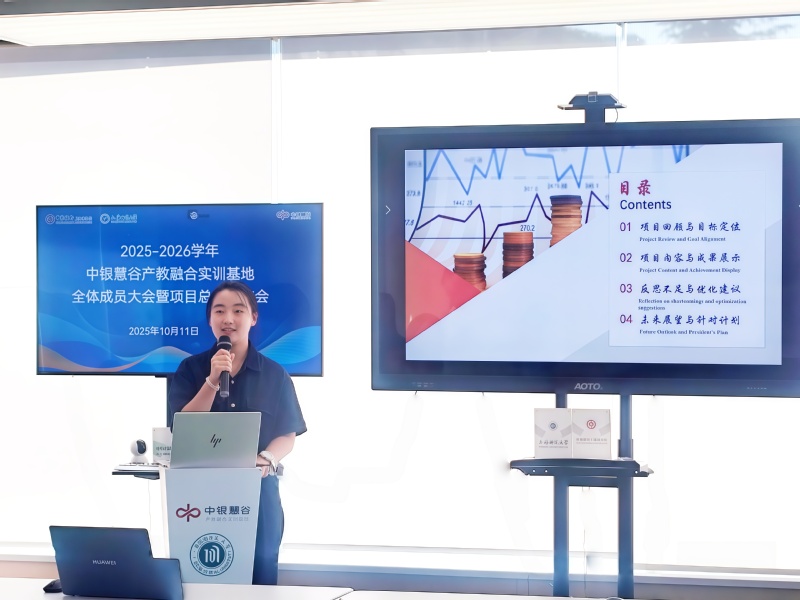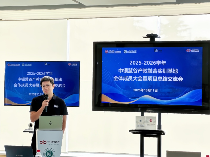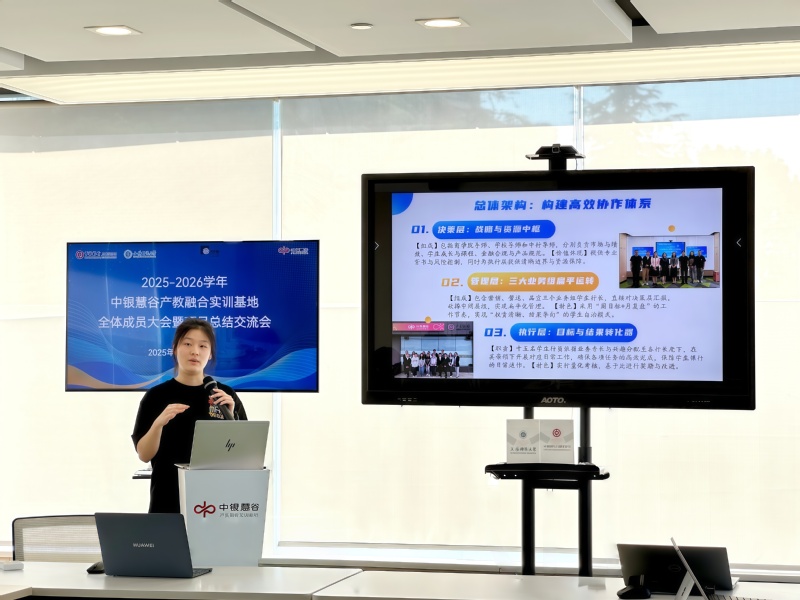 为助力上师大中银慧谷产教融合实训基地新一届学生成员快速熟悉工作内容、明晰发展规划,同时增进新成员间的交流协作,2025年10月11日下午,基地第十届全体成员大会暨项目总结交流会在奉贤校区基地二楼会议室顺利召开。中国银行徐汇支行行政事业机构部主任夏辉、漕河泾支行副行长叶禕,上海师范大学哲学与法政学院李旭旦老师及商学院朱晓波、李斌、蒋凯、薛紫婧老师受邀出席,基地全体学生成员参会。